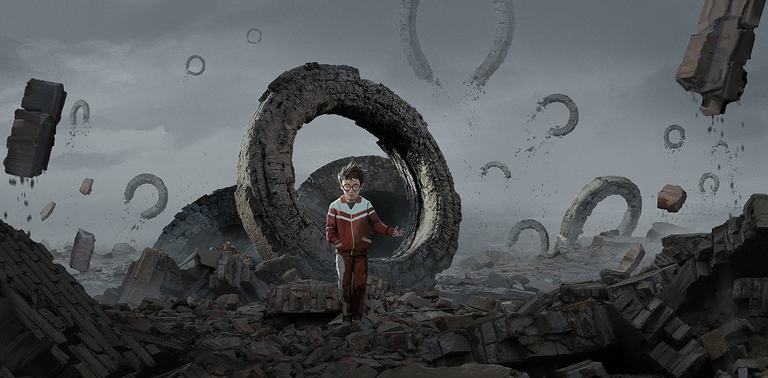 Inverted mechanical pyramids, swallowed by an onrushing dust storm.